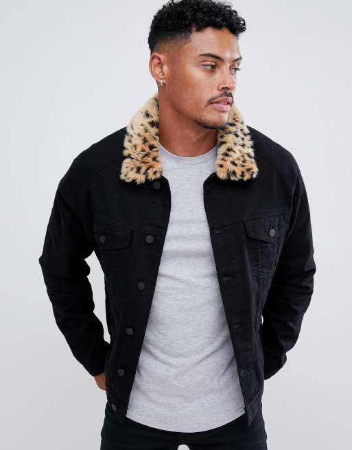 Product Name: Black jean jacket fur collar best sale