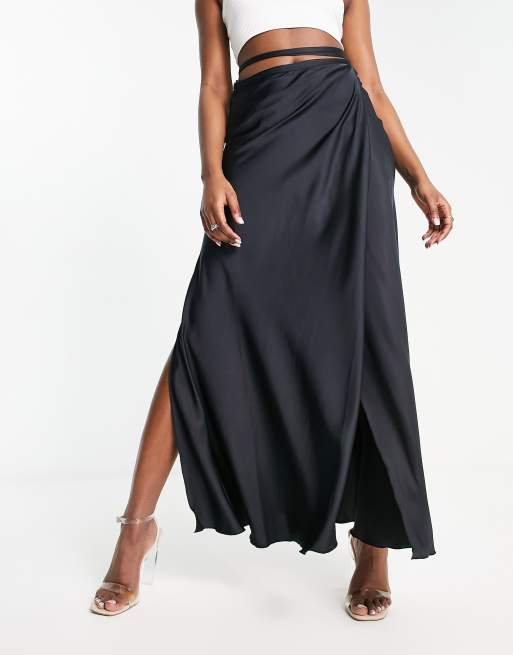 Product Name: Black satin wrap skirt dress best sale