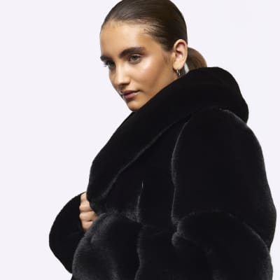 Product Name: Black panelled faux fur coat best sale