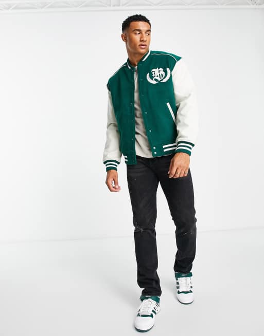 Product Name: Green and white letterman jacket best sale