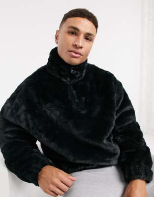 Product Name: Half zip plain faux fur sweatshirt best sale