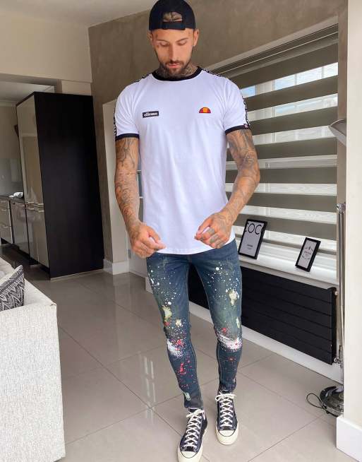Product Name: Mens ripped paint splatter jeans best sale