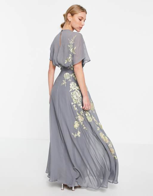 Product Name: Gray dress with flowers best sale