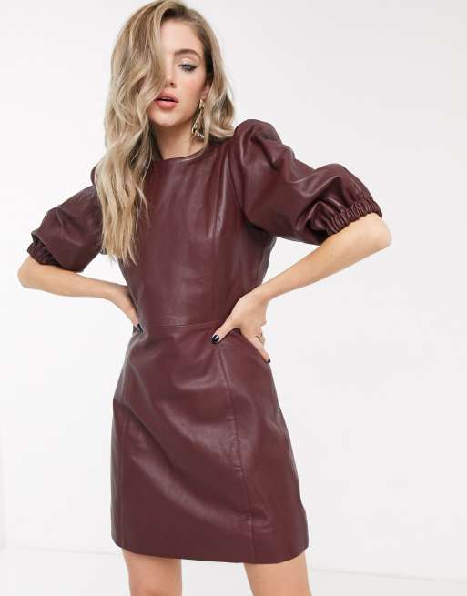 Product Name: Leather burgundy dress best sale