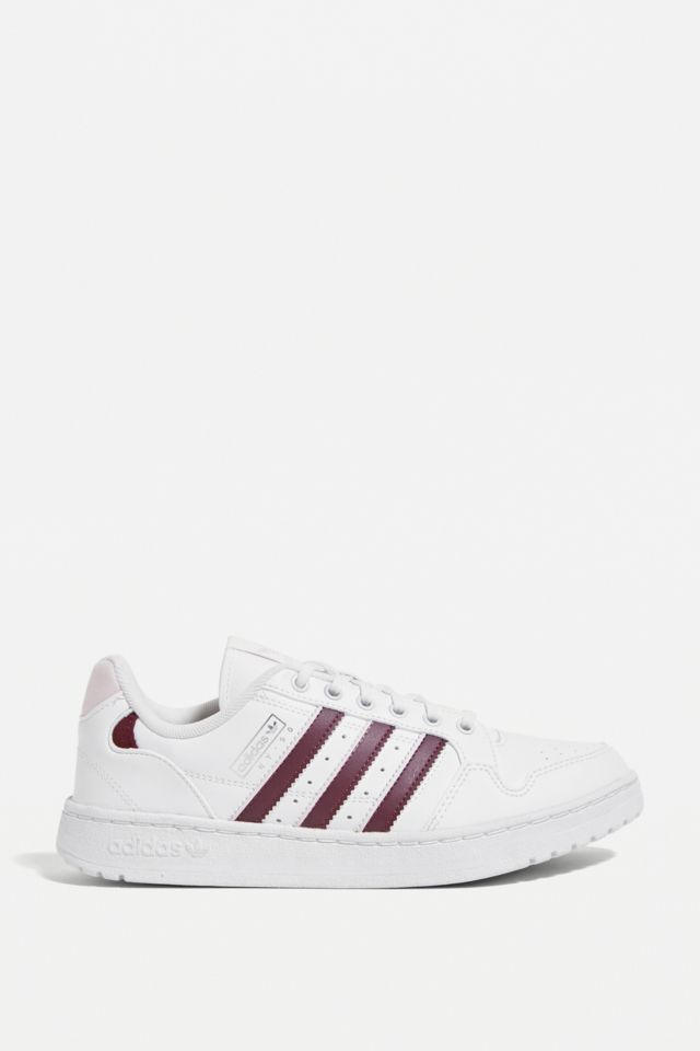 Product Name: White adidas with burgundy stripes best sale