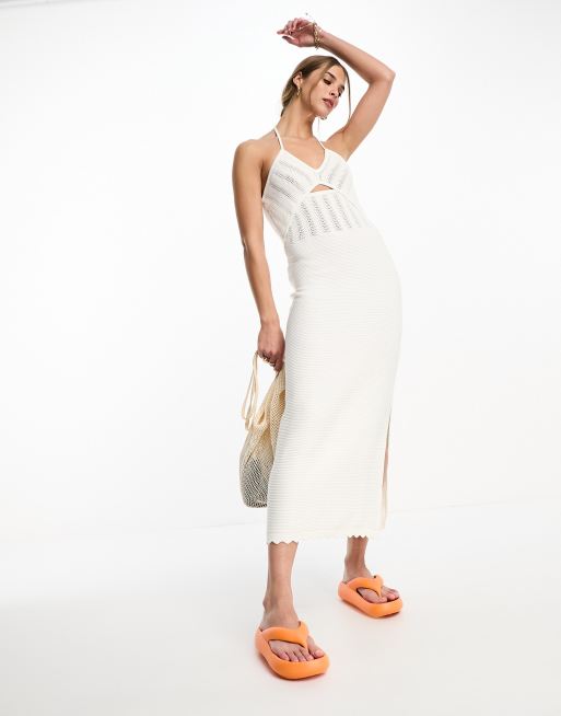 Product Name: White crochet halter dress best sale