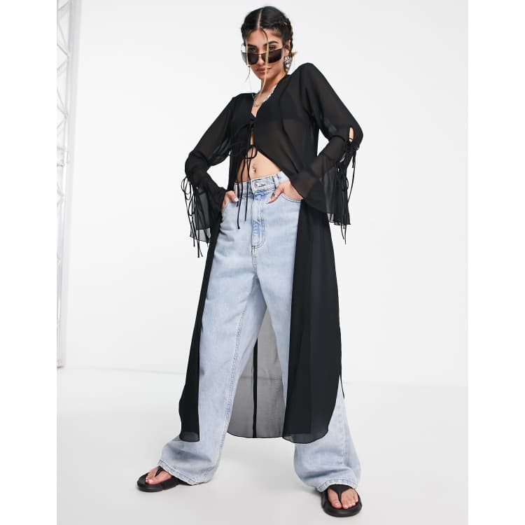 Product Name: Long black chiffon cardigan best sale