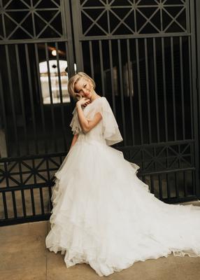 Product Name: Oleg cassini organza ruffle skirt wedding dress best sale