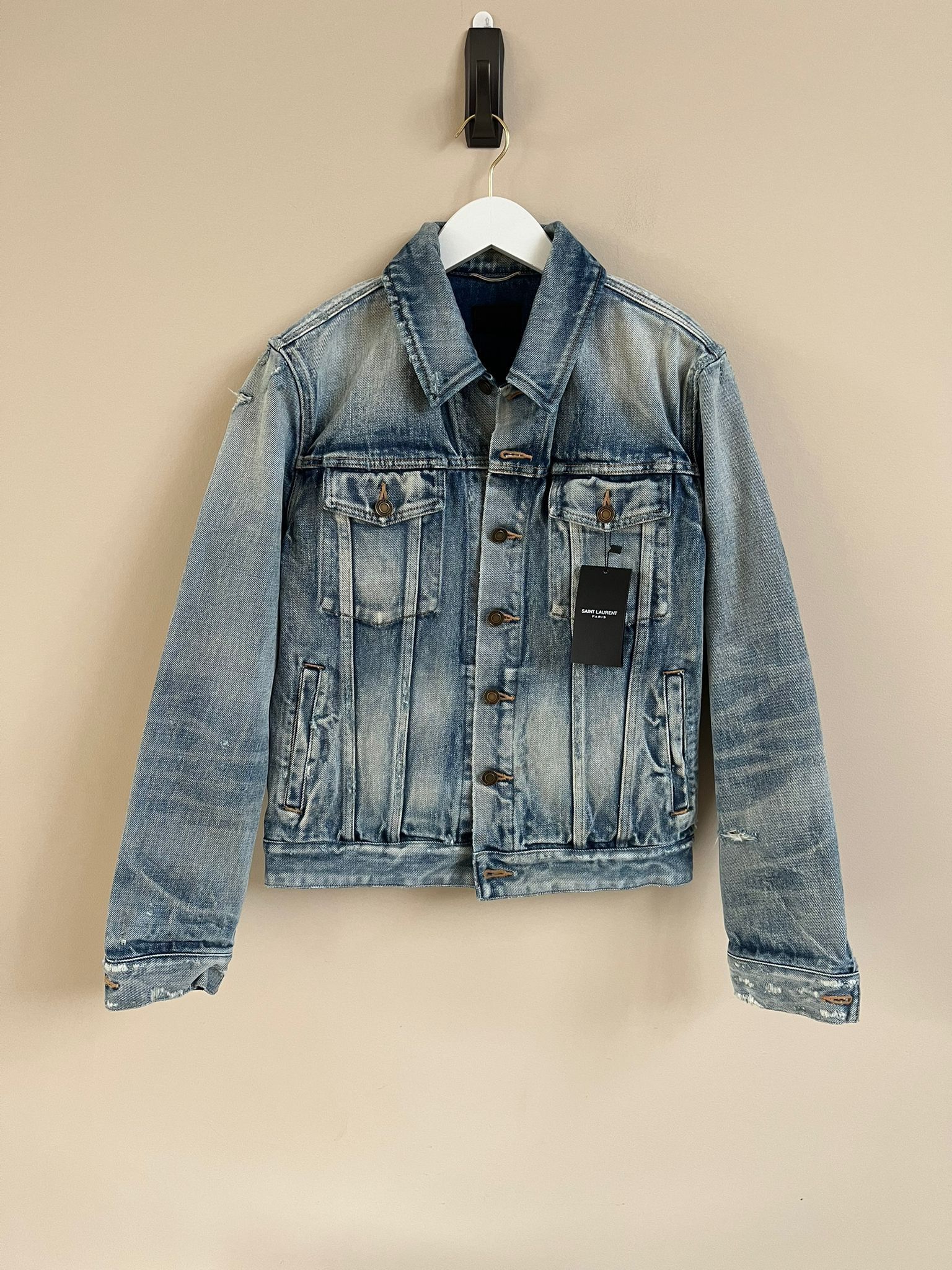 Product Name: Saint laurent distressed denim jacket best sale