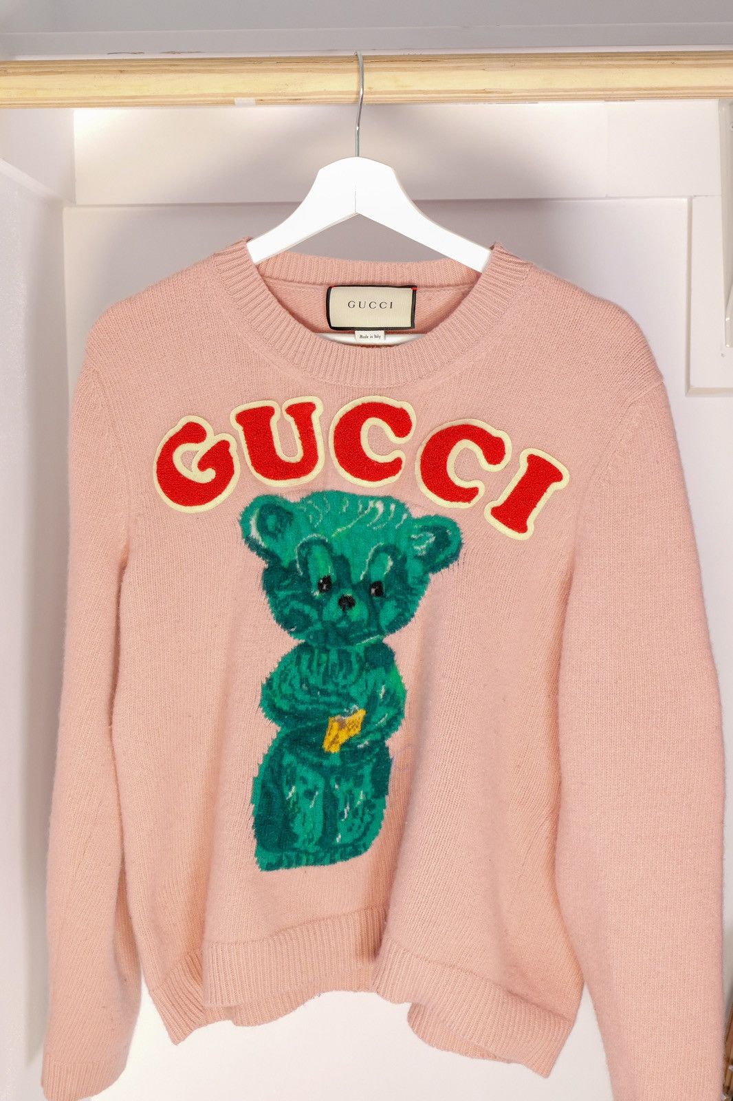 Product Name: Pink gucci sweater with green bear best sale
