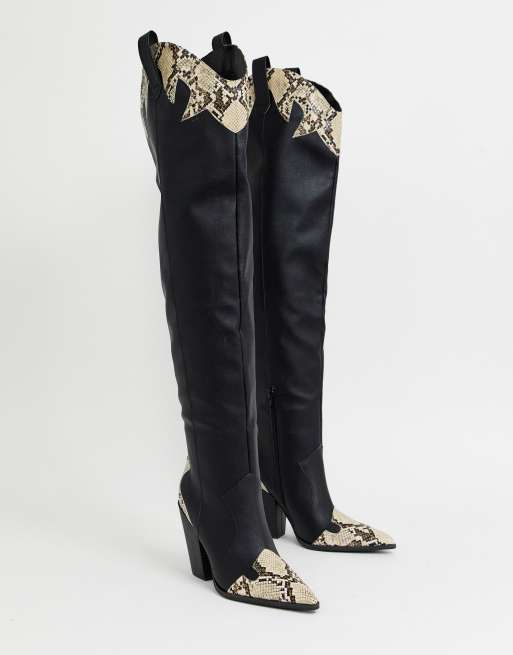 Product Name: Black over the knee cowboy boots best sale