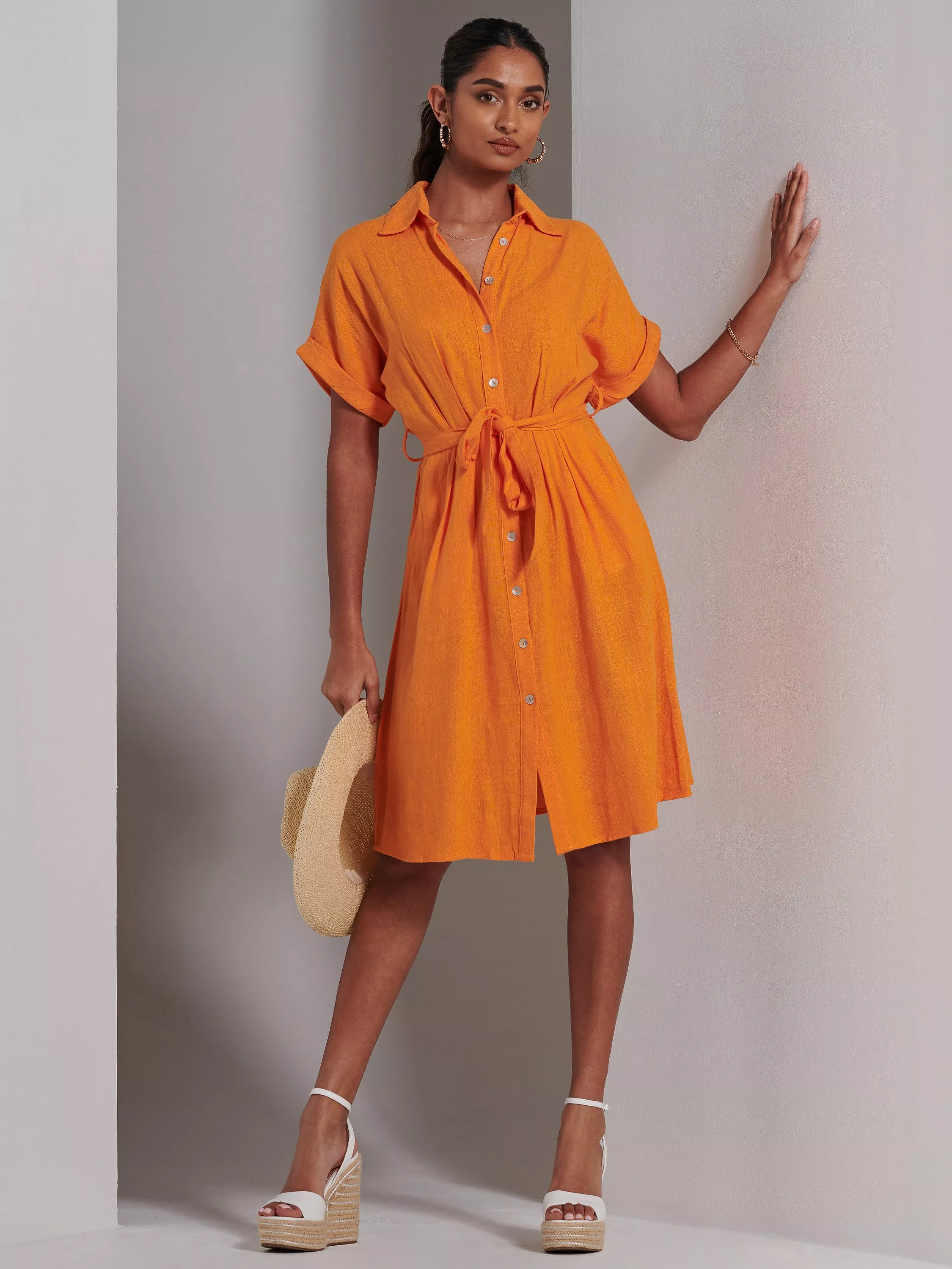 Product Name: Shirt dress orange best sale
