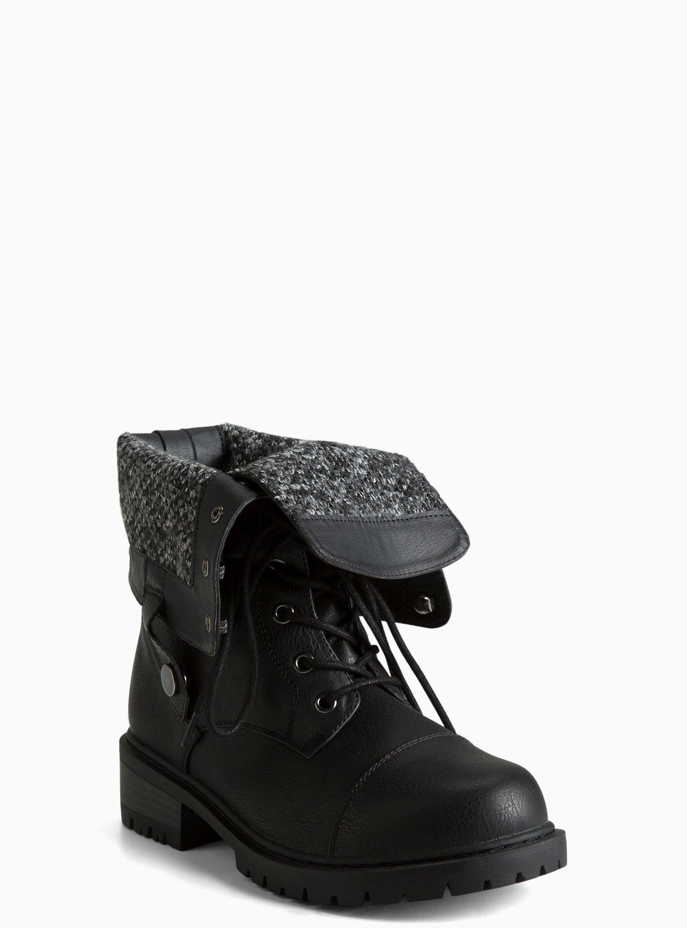 Product Name: Womens black fold over combat boots best sale