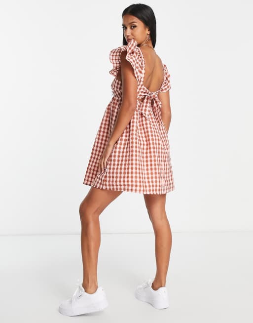 Product Name: Ruffle shoulder gingham mini dress best sale