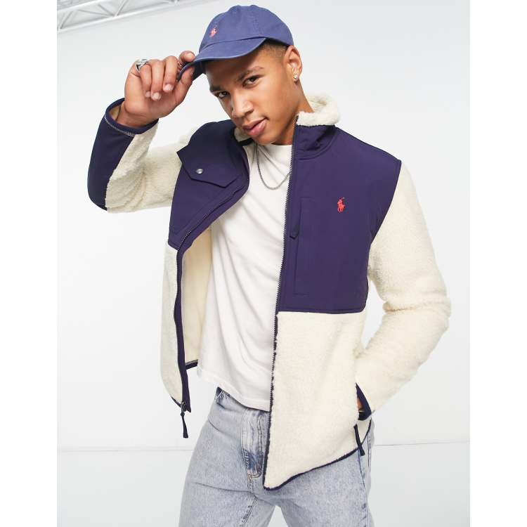 Product Name: Polo ralph lauren full zip borg lined hoodie with player logo in navy best sale