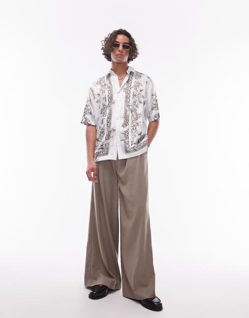Topman Twin pleat baggy smart pants in stone