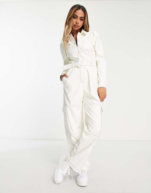 Product Name: White cargo jumpsuit best sale