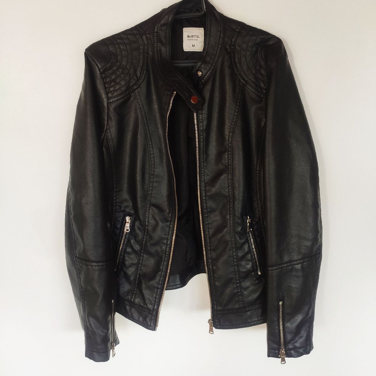 Product Name: Jaqueta de couro blue steel best sale