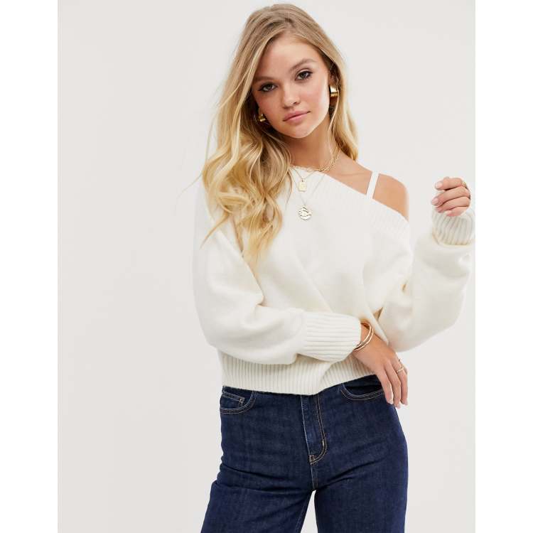 Product Name: White off the shoulder knitted jumper best sale