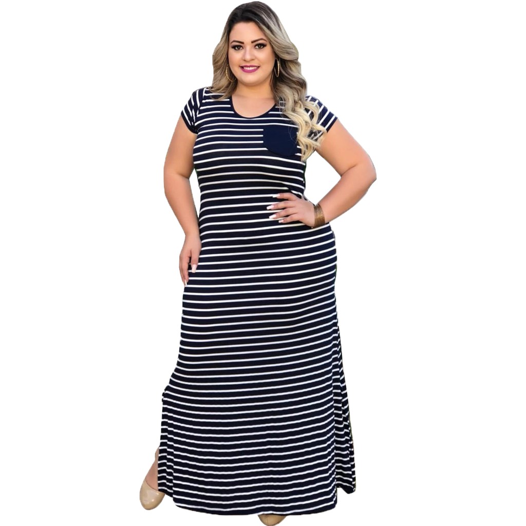 Product code: Vestido listrado longo plus size best sale