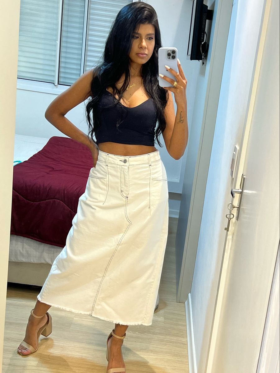 Product Name: Saia jeans branca longa best sale