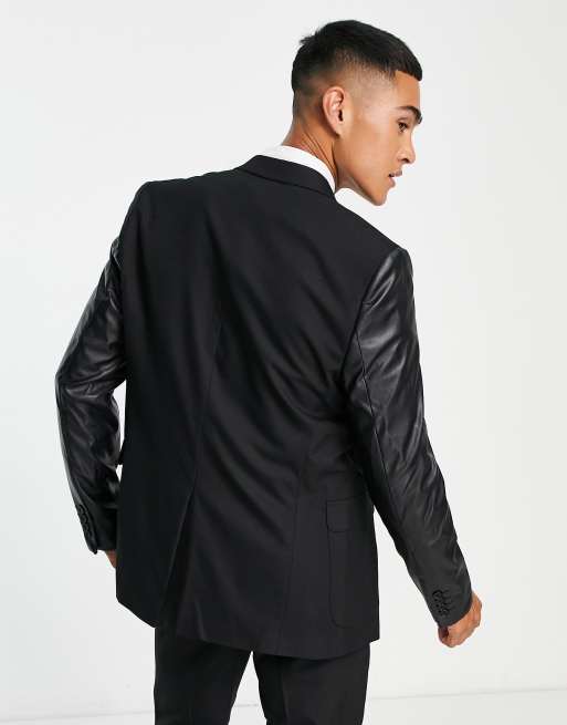 Product Name: Black blazer with leather sleeves best sale